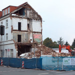 Was kam dabei gelegener, als ein Abbruchhaus, das momentan in seinen letzten Atemzügen steht und bereits gravierend von dem Stahlmaul des Abbruchbaggers angeknabbert wurde. Innerlich malte ich mir Szenen aus, in denen ein Kriegsberichtserstatter zerbombte Straßenzüge fotografierte. Ganz so spannend war das Abbruchhaus natürlich nicht, aber ich gab mein Bestes – natürlich unter Lebensgefahr. Denn überall lauerten Scharfschützen und die Panzer standen schußbereit in den Trümmern.