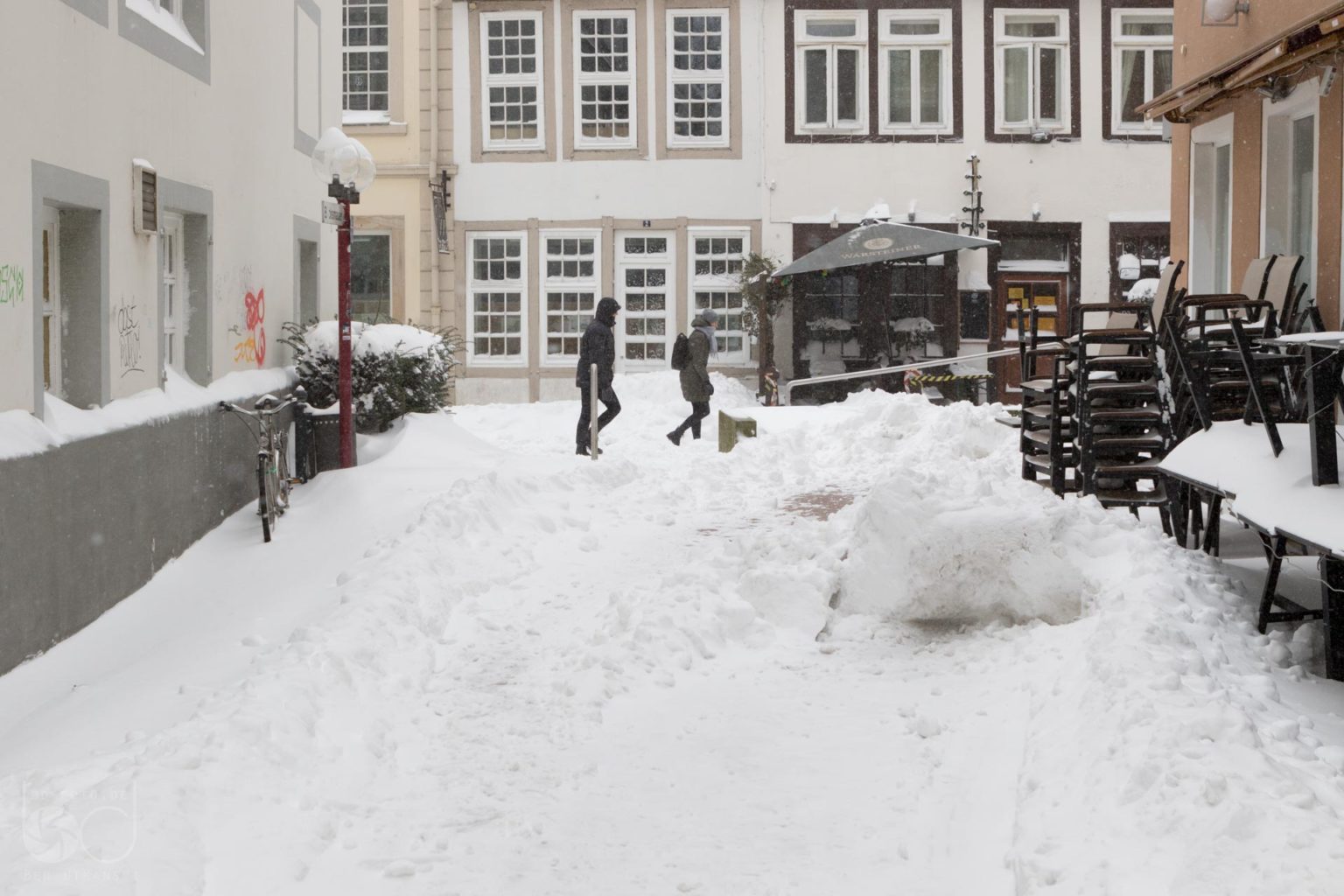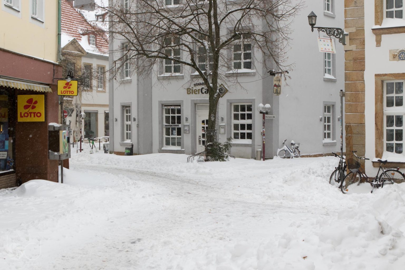 In den letzten drei Tagen machte ich unzählige Fotos des Schneetreibens in Osnabrück. Die meisten Bilder bleiben bei der Menge jedoch einfach unbearbeitet auf den Tiefen der Festplatte zurück. Ein paar – ich nenne sie – out takes gibt’s allerdings hier. Jedoch sei gesagt: Es handelt sich nicht um anspruchsvolle fotografische Ergüsse. Vielmehr um dokumentarische Aufnahmen, wie man sie aus Zeitungen kennt. Aufgrund des regionalen Bezuges dürften sie auch nur für Ortsansässige relevant sein.