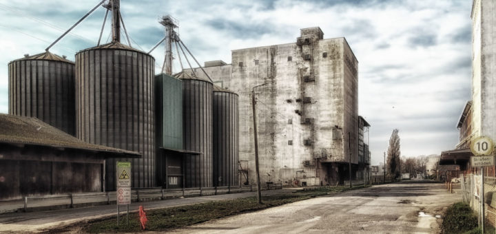 Ein klassisches vorher/nacher-Bild einer mehr oder minder heruntergekommenen Hafenanlage am Niederrhein. In den Silos des ehemaligen Raiffeisenspeichers lagerte Getreide und Viehfutter. Doch mittlerweile herrscht hier Totenstille.. Ich tobte mich in Photoshop aus, um dem Bild dieses Endzeitfeeling zu vermitteln. Düstere Farben, Menschenleere und natürlich nukleare Verseuchung! Alles halb so wild. Neben den Silos stand ein Fahrzeug der Raiffeissen, im benachbarten Speicher luden LKWs Trockenfutter und...